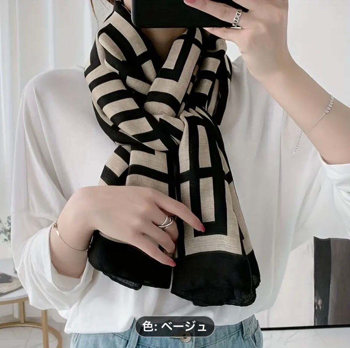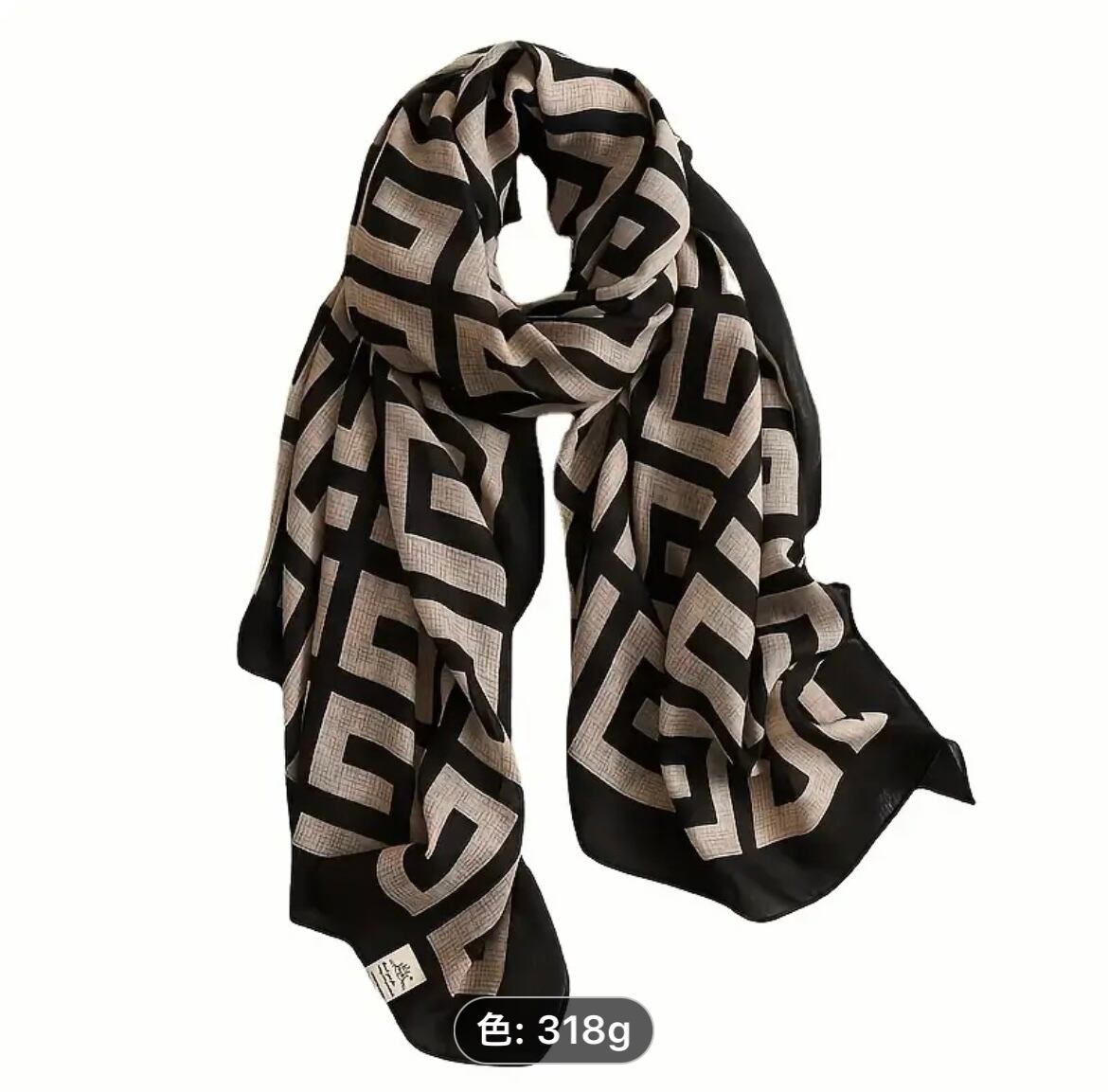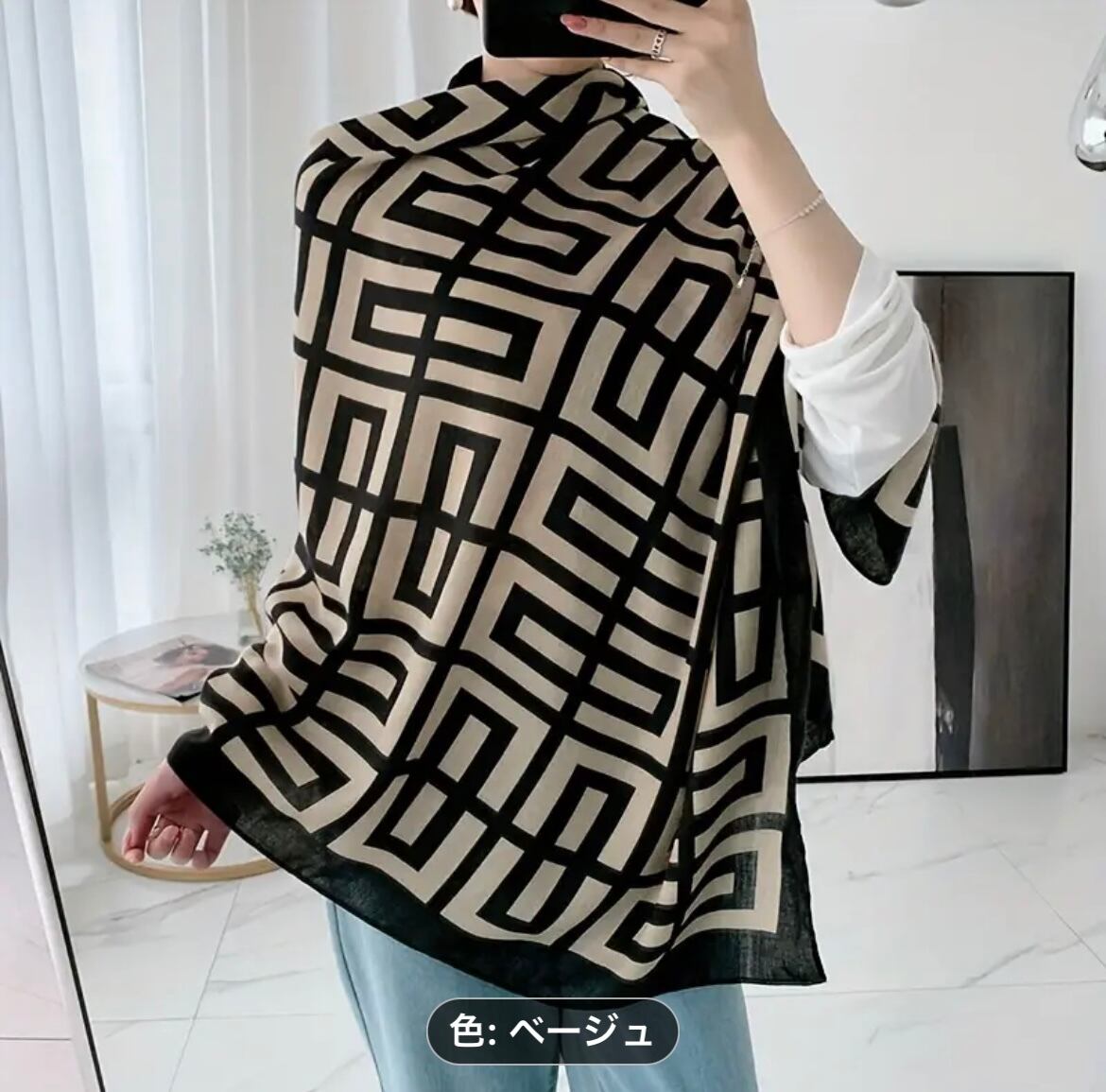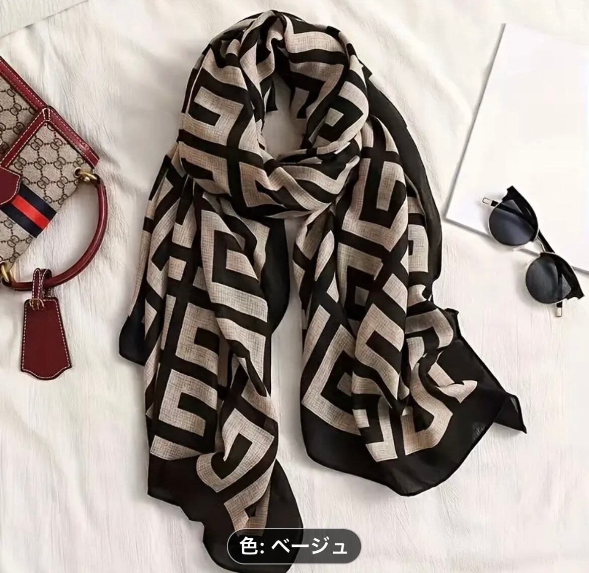 幾何学模様のスカーフ ブラックベージュを手に入れて、おしゃれなデザインを楽しみながら、快適な毎日を過ごしましょう!スタイルと機能を両立したこのアイテムをぜひお試しください!